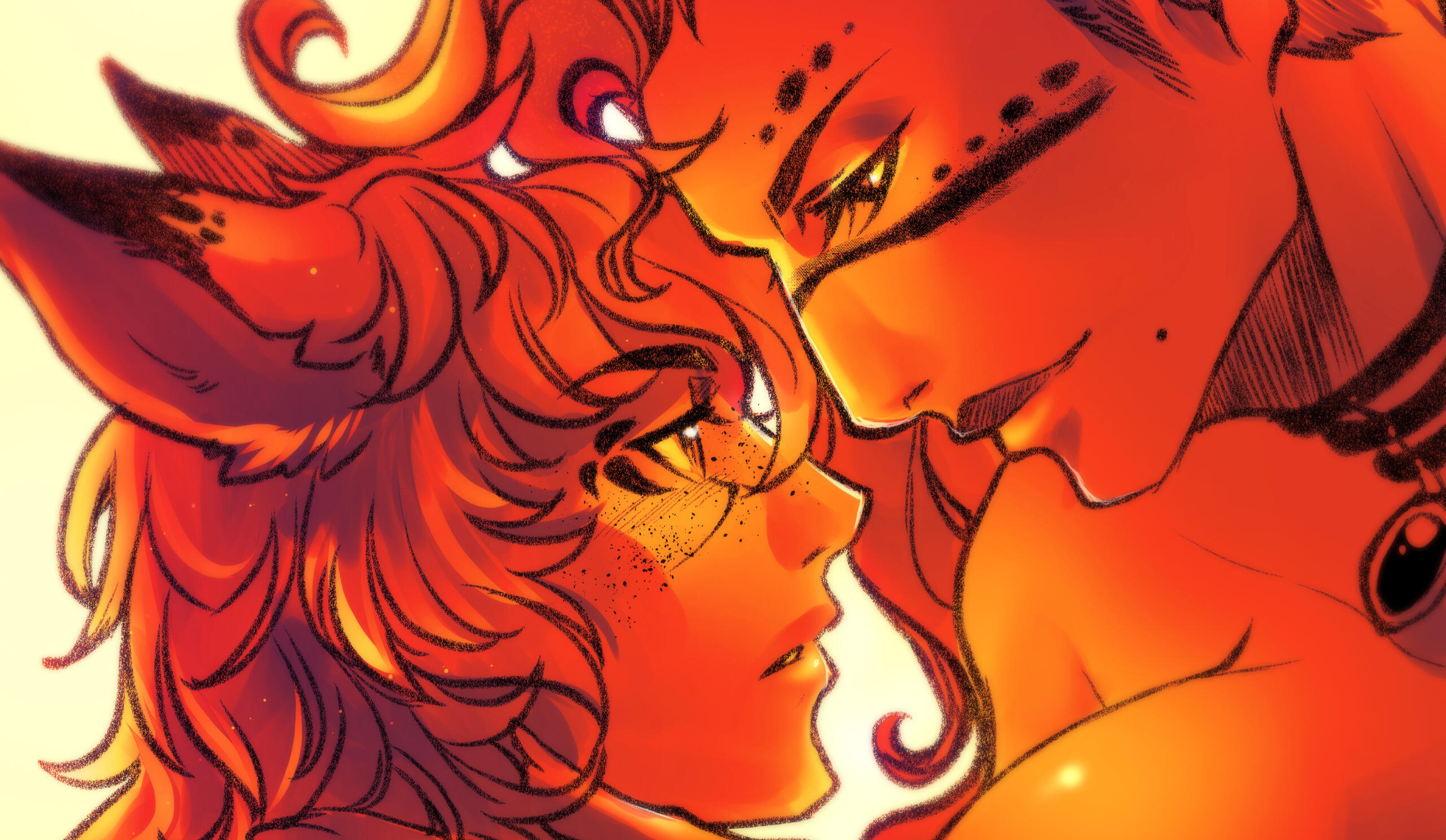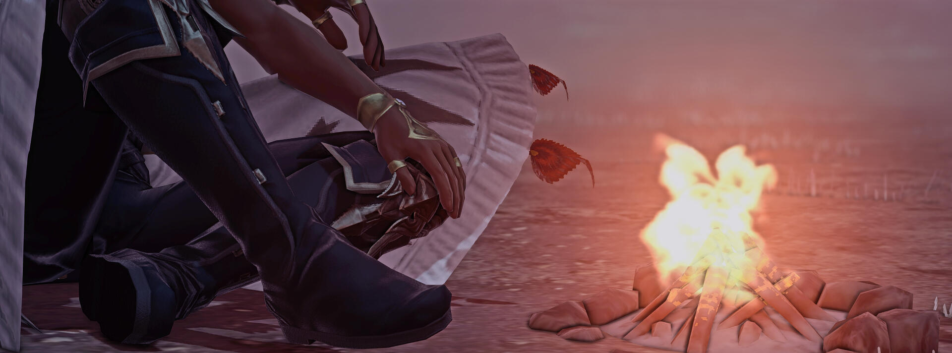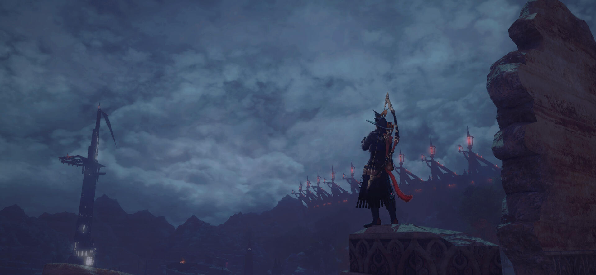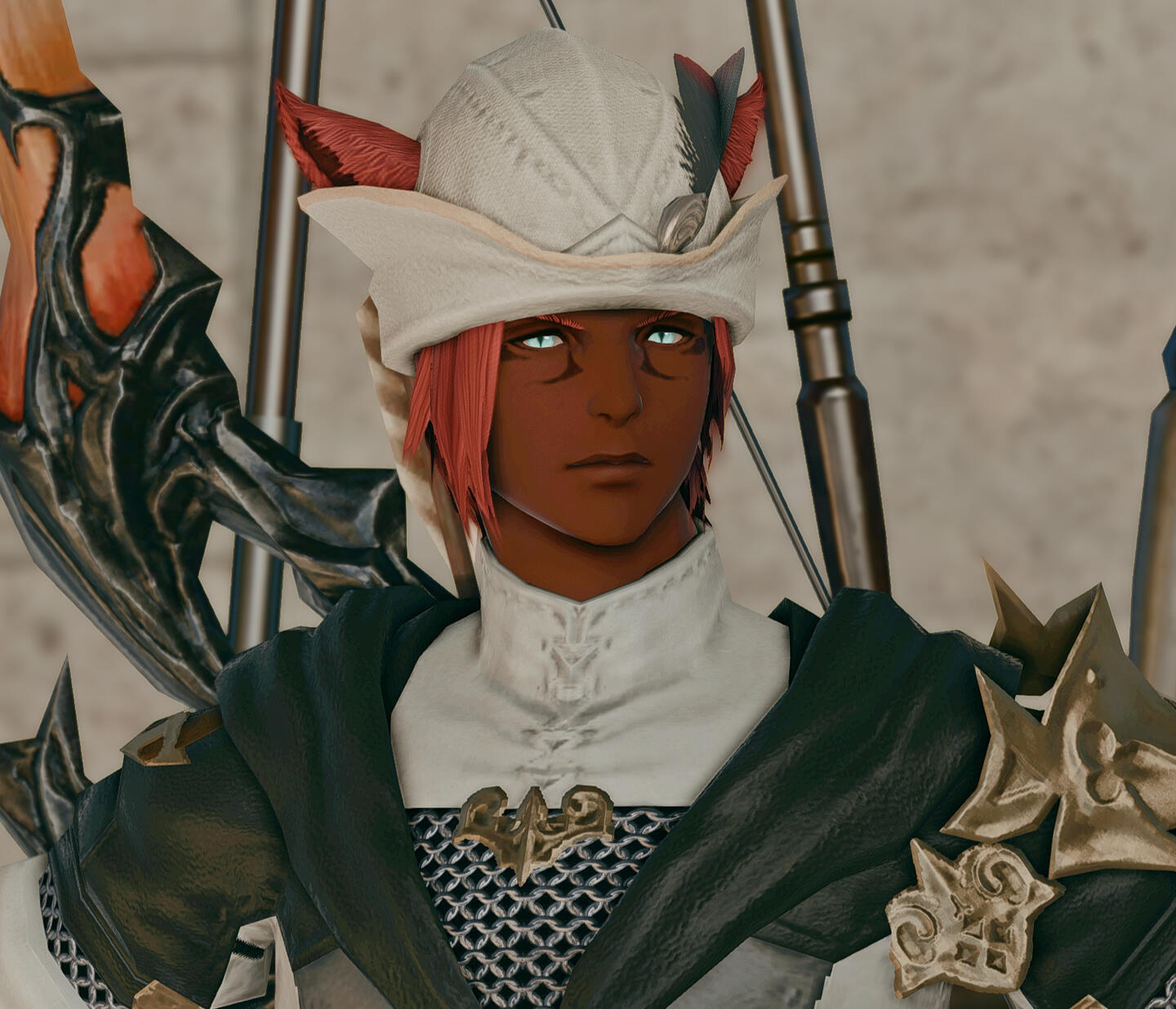 Wenarian kept on living his life after parting ways with Silent Snow. For a few years in a row, he was riding with traders from various caravans; exploring the continent was his main goal. He had no particular destination in mind. Wenarian’s journeys took him as far as the Sea of Jade. It was around that time that one of the most fateful meetings had happened, slowly but steadily turning his life upside down. He started courting a male of his utmost interest, an Elezen named Aygun.To be honest, Wenarian wasn’t known as a man sharing interest in other males. Quite on the contrary even! But there was something about Aygun, which the Miqo’te simply couldn’t ignore. Skilled in dark arts and aether manipulation, Aygun was the complete opposite of the bard. And people do say that the opposites tend to attract each other...Well, if that was the case though, then the affection was most certainly one-sided! For it was Wenarian’s path of trial and error to walk towards a man, seemingly cold and disinterested in anything but magic. Eventually, as annoying as his ceaseless flirtations could be, the pragmatic Aygun did find him to be a dependable resource. A companion worthy enough to stay by his side for the time being. Since Wenarian’s travels took him all over the world, he was able to find all manner of things, such as exotic materials, alchemical reagents and other items the Blackmage could possibly need. And the Seeker would never disappoint (Author's note: Wenarian would return sometimes injured, sometimes drunk. Sometimes both). He did return and he would always have what Aygun had asked for.It was this dependability that led Aygun to believe in Wenarian and his ability to assist him. However at this point in Aygun's life, Wenarian was useful... but otherwise very uninteresting. Wenarian grew greatly but this growth would, like many good things, take time. The two companions would delve through the depths of ruins and dungeons alike. Aygun knew that Wenarian would be able to provide the needed support in any battle... when he was not goofing off! But jokes and flirtations aside. Just as he had been described amongst the Quiver, when it came to his work - the Seeker certainly knew how to focus and was very dependable.Yet Wenarian could not catch Aygun's attention. Despite the hopeless seeming outlook, the bard never gave up. Not even once! It was a year before the Battle of Carteneau Flats and the Descent of Dalamud, that Wenarian would become too bold in his attempt to cross certain boundaries... and with that he earned the Blackmage's ire.It was that day, that he dared to steal a kiss without Aygun's consent. Not wishing to reduce the cheeky Seeker to ash right away but wanting to teach him a good lesson, the Elezen unleashed black magic upon him. A powerful bolt which struck the male's arm was a well-deserved punishment, a price he paid for his advances. Aygun never expected to see Wenarian again after that as the latter left injured.However, that same day Wenarian had also earned Aygun's earnest attention. Not for the kiss, of course, but for his return. Burned by a Black Mage and scorned as a lover, would’ve discouraged many individuals. So the Elezen was pretty astonished to find the Miqo'te back at his doorstep, with that same goofy smile and a crude bandage around his newly earned burn.From that moment on, Wenarian continued much as he was; laughing, telling jokes, making racket with his music as if nothing had ever happened. Save for one major change. Wenarian never again broke Aygun's boundaries or made a new bold attempt. Never again did he do something, which his companion could consider to be ‘disrespectful’. And for the first time, Aygun started noticing more about the Seeker.Wenarian had seen twenty-three summers come and go, when the Seventh Umbral Calamity took place. All men, capable of fighting, have been called to arms by the City-States throughout Eorzea. Both Wenarian and Aygun had ventured to Carteneau Flats to assist their respected Alliances in fighting the Garlean Empire's invasion.Watching Dalamud descend upon the planet's surface was a dreadful sight for friend and foe alike. When Dalamud burst open, releasing the elder primal Bahamut from his captivity, his infernal wrath was unleashed upon the entire Realm. The ground shook, the cities vanished in flames. Wenarian would never forget the fear seizing and suffocating him, angst crawling down his spine as he lifted the gaze towards the burning heavens.A single fleeting moment was needed... to understand and feel how petty the worldly concerns of people were, compared to such an inavoidable disaster. A great catastrophe, which would put an end to everything he knew. Mark an end to the stories of everyone he held dear. A disaster which, according to the Scholars of Sharlayan, had devastated the world repeatedly and rendered all known... to ashes six times before his own era.This was, what they called a Calamity.The dreadful realisation of one's presence being meaningless, given the overwhelming scale of the conflict... Facing the inevitable devastation and demise of allies and foes alike... Watching people burn, machines clash, metal srape, flesh being torn by spears and bullets... These images, Wenarian would never forget.Yet hearing the shouts of agony and watching people flee and retreat in overwheling fear... made the Seeker's hand grab his bow and quiver tightly. The grounds around Wenarian oozed with the scent of burnt flesh and melting armor. He saw no point in running. But he didn't blame the many around him who did.With the fire raining from the sky, there was no place for anyone to hide. No point in even trying. No a single spot upon Eorzea's continents would be granted any kind of salvation... now would it? And so amids the heat of the battlefield, Wenarian pressed on, fighting until his last breath.If that was the last thing he ever did... he could be selfish. This one time!He wanted to ma