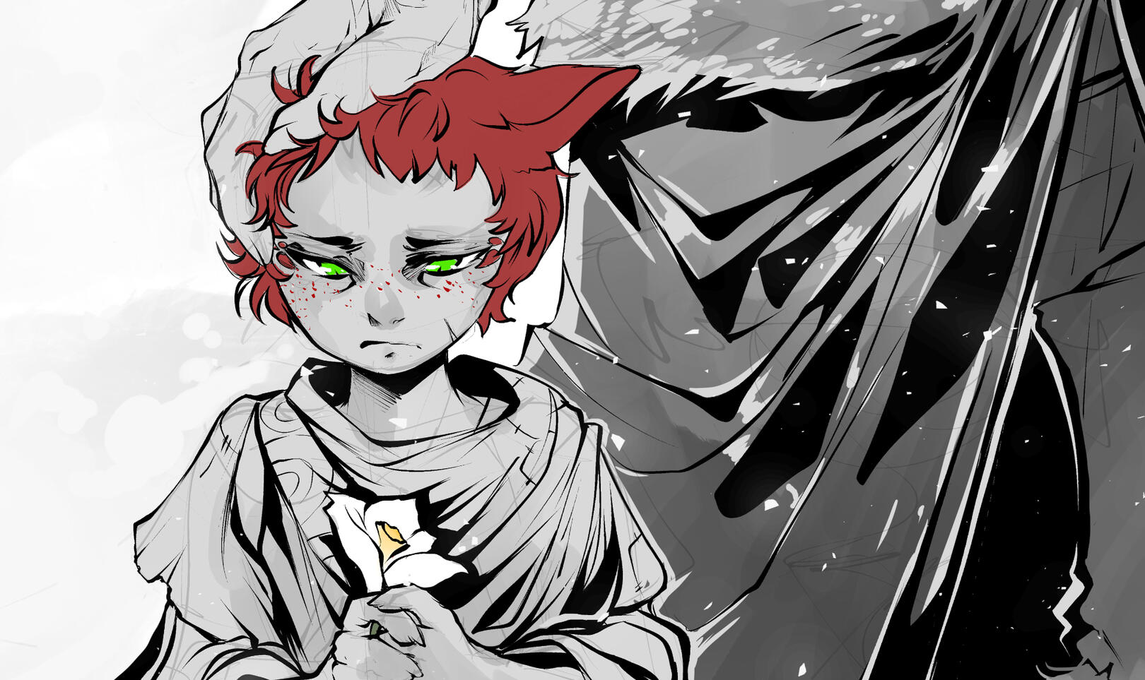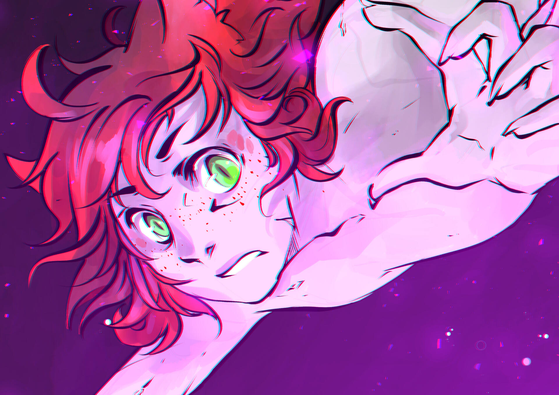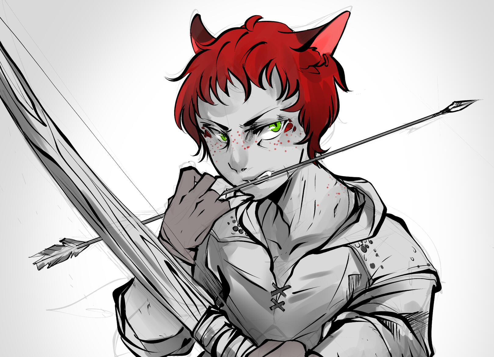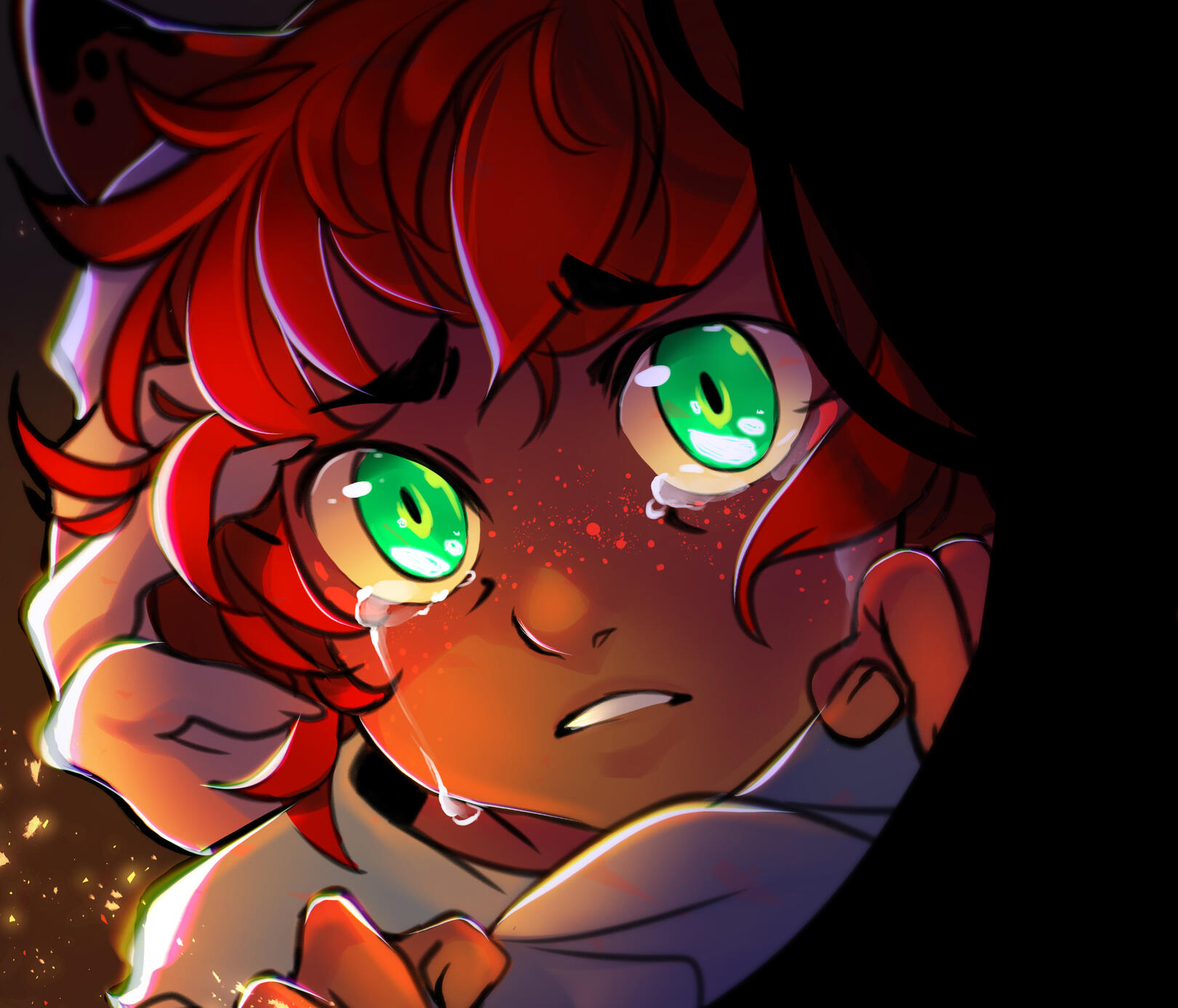 | FACIAL FEATURES | Red freckles are sprinkled over his cheeks, some even cover parts of his lower neck and shoulders |