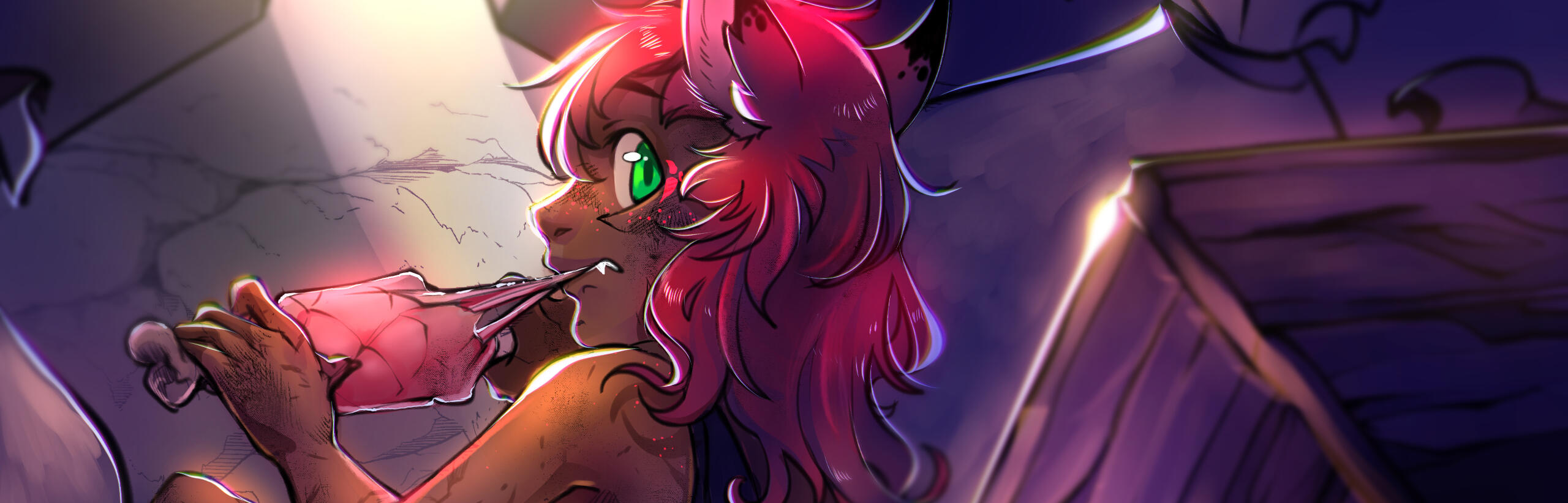 | PHOBIA | There is one particular thing that makes an ice cold shudder run down Wenarian's spine, to a point where this self-confident and usually pretty unfazed male will behave highly irrational and even (quite often) faint. This Miqo'te has quite a unique a phobia - he is terrified of slimes. Of any kind. Just don't-; let them come close... Wenarian hates them with utmost passion and will willingly hop into a shower (or whatever water is nearby) and stay there soaking for hours - just to clean himself off the disgusting liquid! |